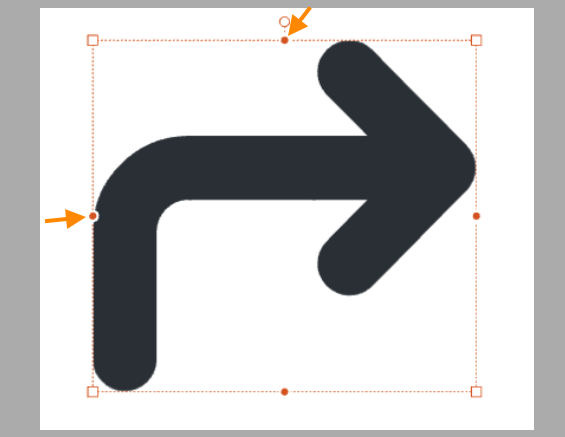 Smart objects are identified by additional orange resizing handles present when selecting the asset on the stage:
